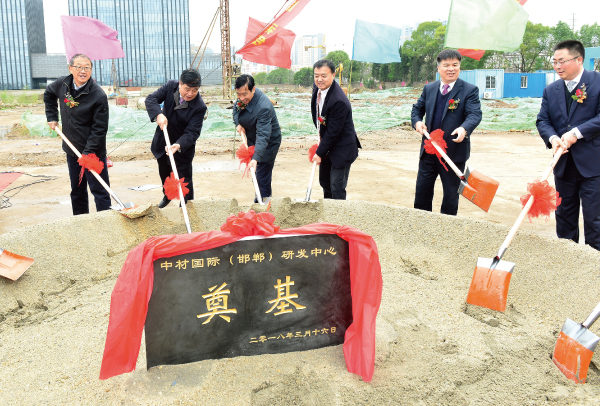 ▲▲▲領(lǐng)導(dǎo)嘉賓為中材國(guó)際(邯鄲)研發(fā)中心項(xiàng)目開工建設(shè)奠基培土