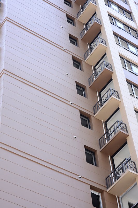 上海中福城(二期),共18層,高62.9m,是國內第一棟高層鋼結構使用NALC板作圍護結構的住宅項目。外墻分別采用150、200厚ALC平板及藝術板,50厚ALC板防火包梁,共用ALC板20000平方米。成功解決了高層建筑的保溫(達到50%節(jié)能標準)、抗震(滿足抗震設防烈度10度以上要求)和防火(耐火極限大于4小時)課題。共18層,高62.9m,建筑面積5.87萬m2,1~3層裙樓為商業(yè)樓,4~18層住宅共三幢塔樓呈品字形布置。采用鋼框混凝土筒體系,Φ500、450、350mm鋼管砼柱,HN400×200 H型鋼梁,110厚壓型鋼板鋼筋砼樓板。外墻分別采用150、200厚NALC平板及藝術板作ADR法外掛式和接縫鋼筋+ADR法內嵌式安裝,50厚NALC板防火包梁,共用NALC板2900m3。